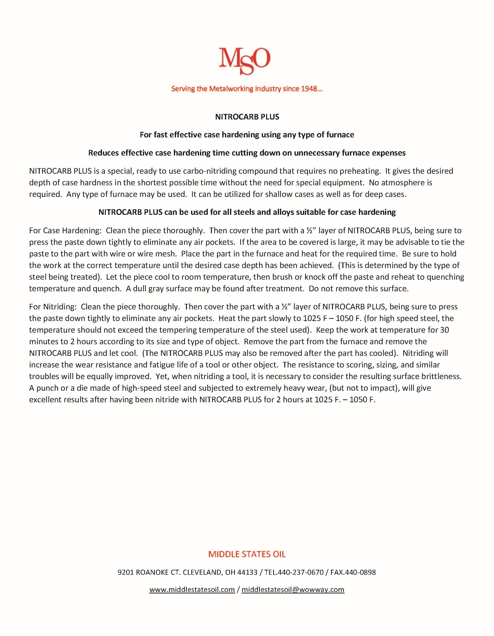 Welcome to Middle States Oil, your go-to company to supply the best materials for your compounding needs! This website contains links to data sheets of our three main supplies of Isopac, NitroCarb Plus and Non-Case.